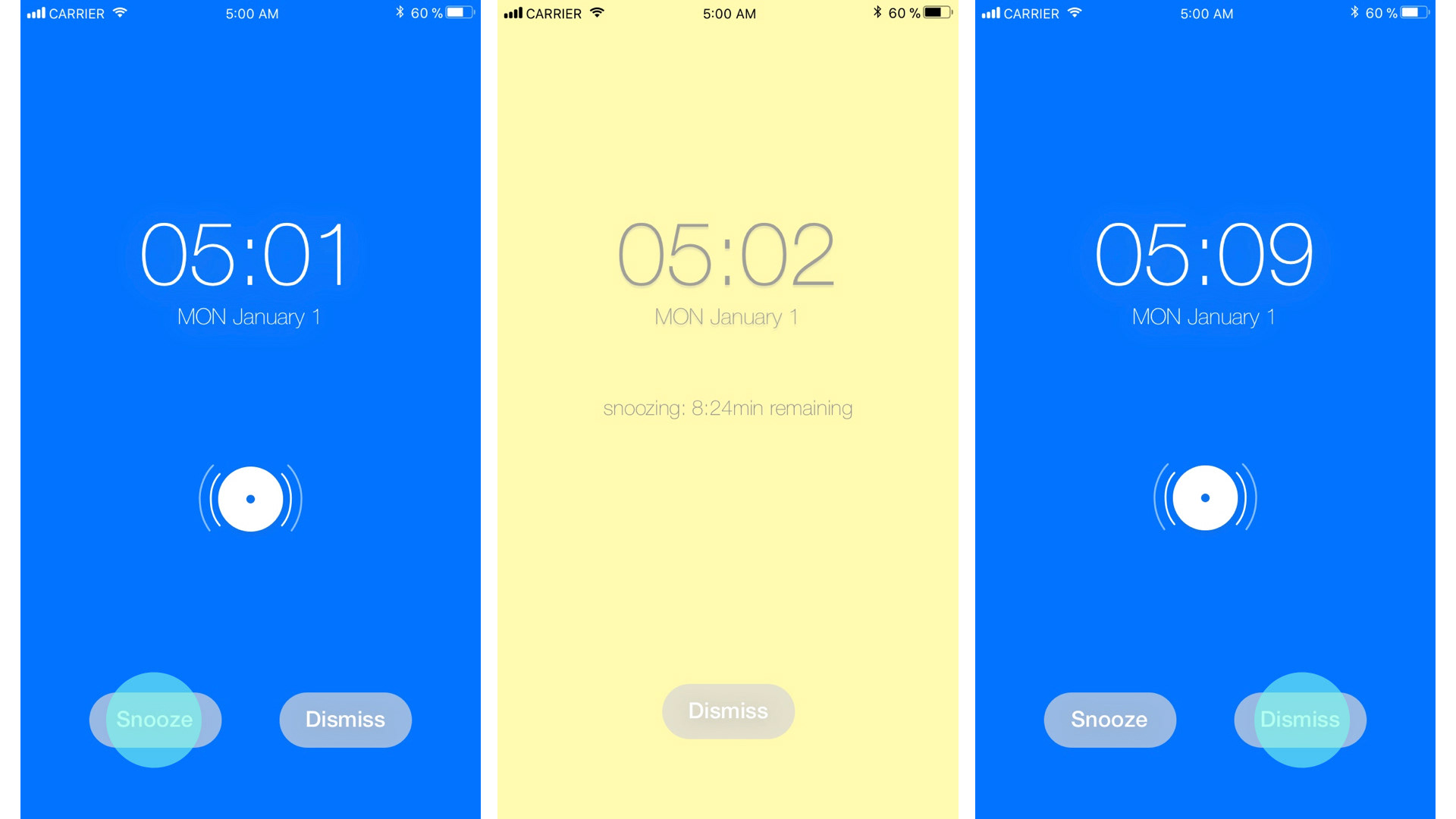 Wake up slowly using light the therapy through your phone. You can try different color combinations and track your snooze stats to find which combinations works the best for you. To see a simulation watch the video.