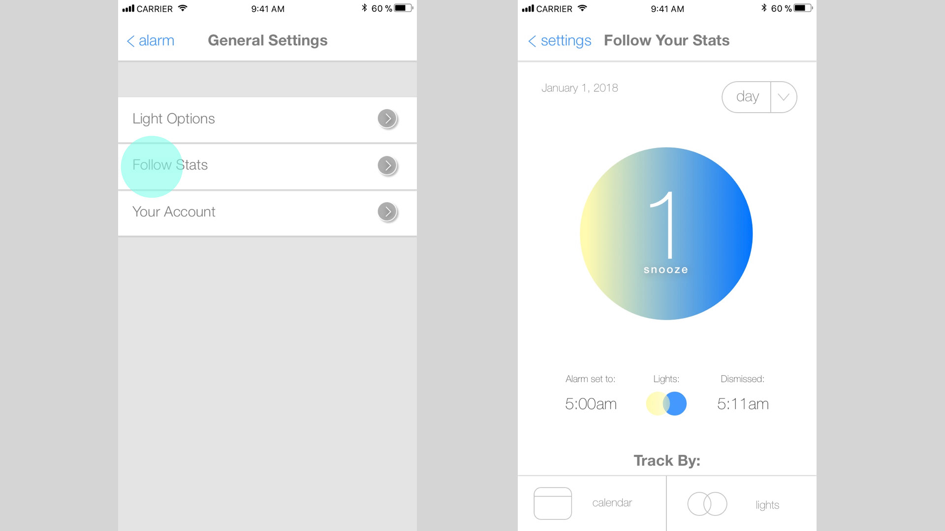 UX/UI: Mobile App, Light Therapy Alarm