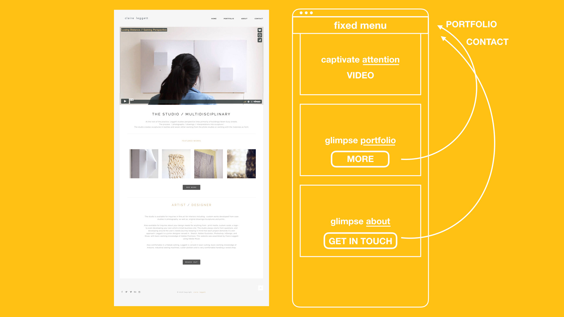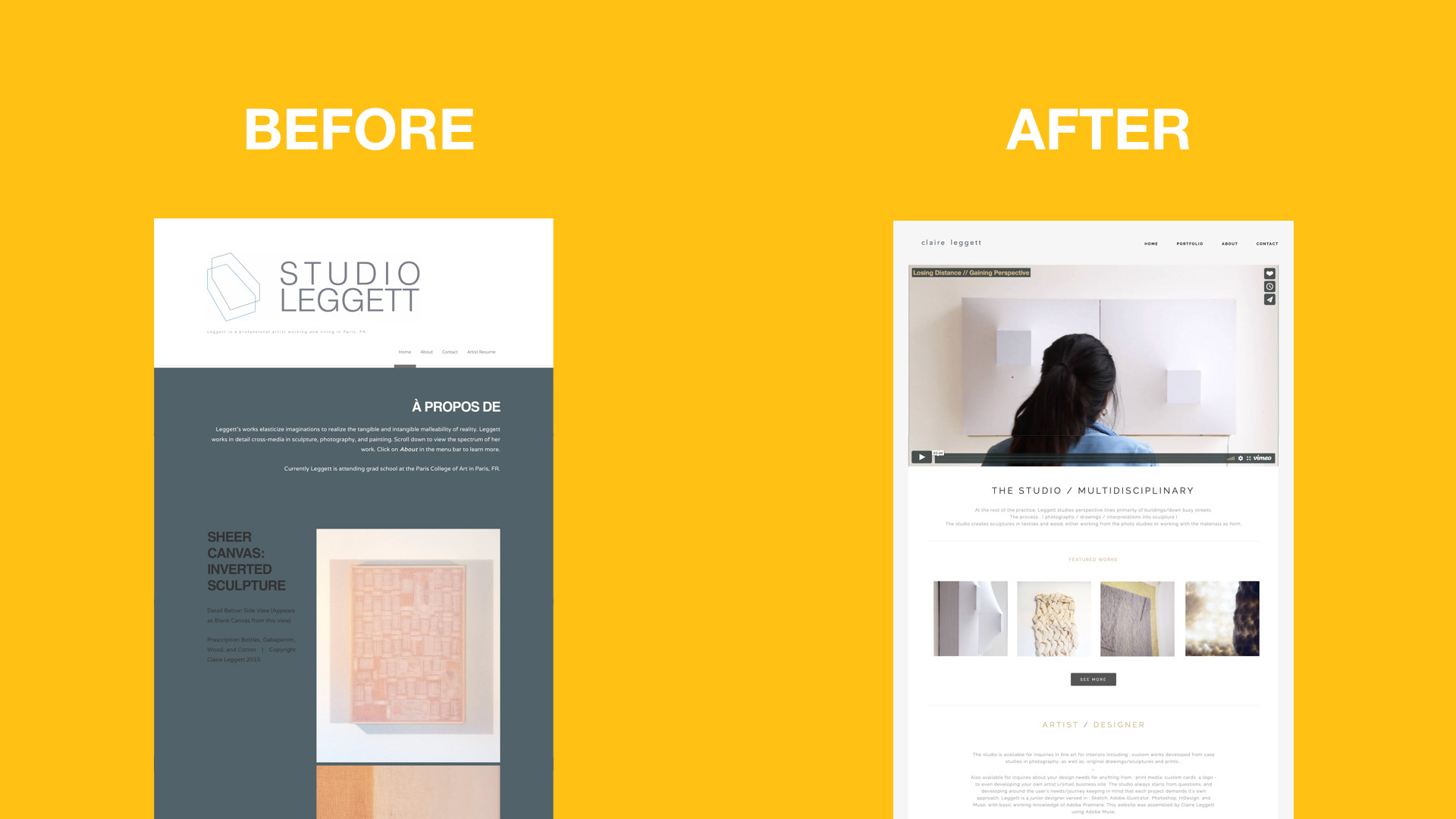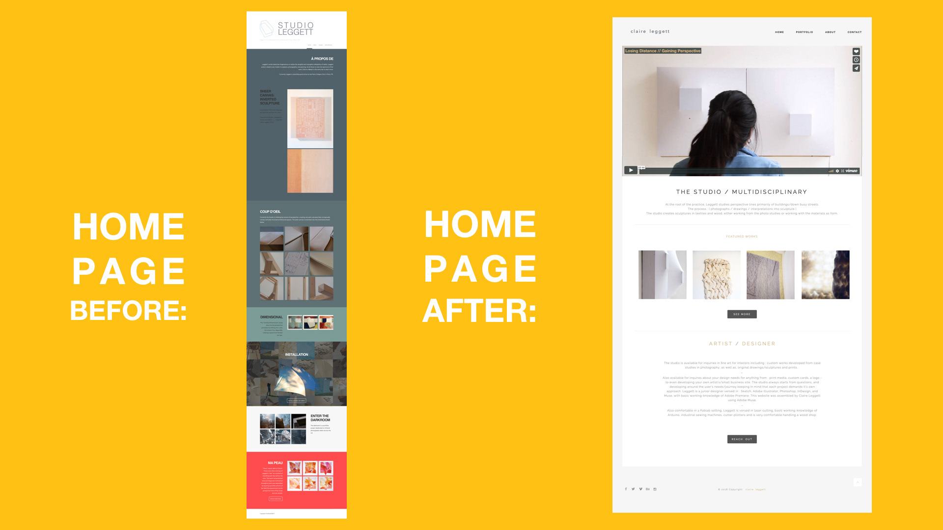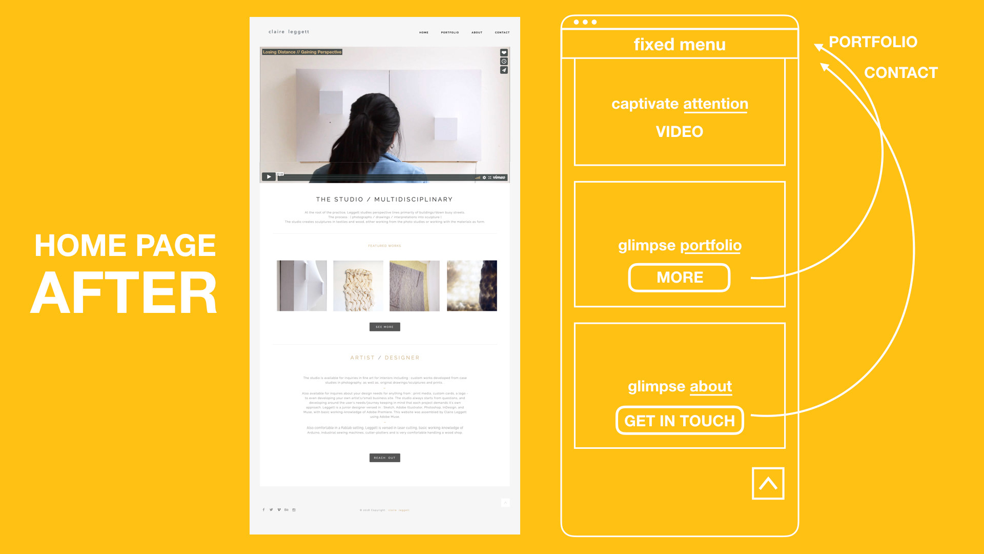 Redesign of website for portfolio based content. Sections: 1) BEFORE / AFTER 2) PROTOTYPES 3) METHODOLOGY